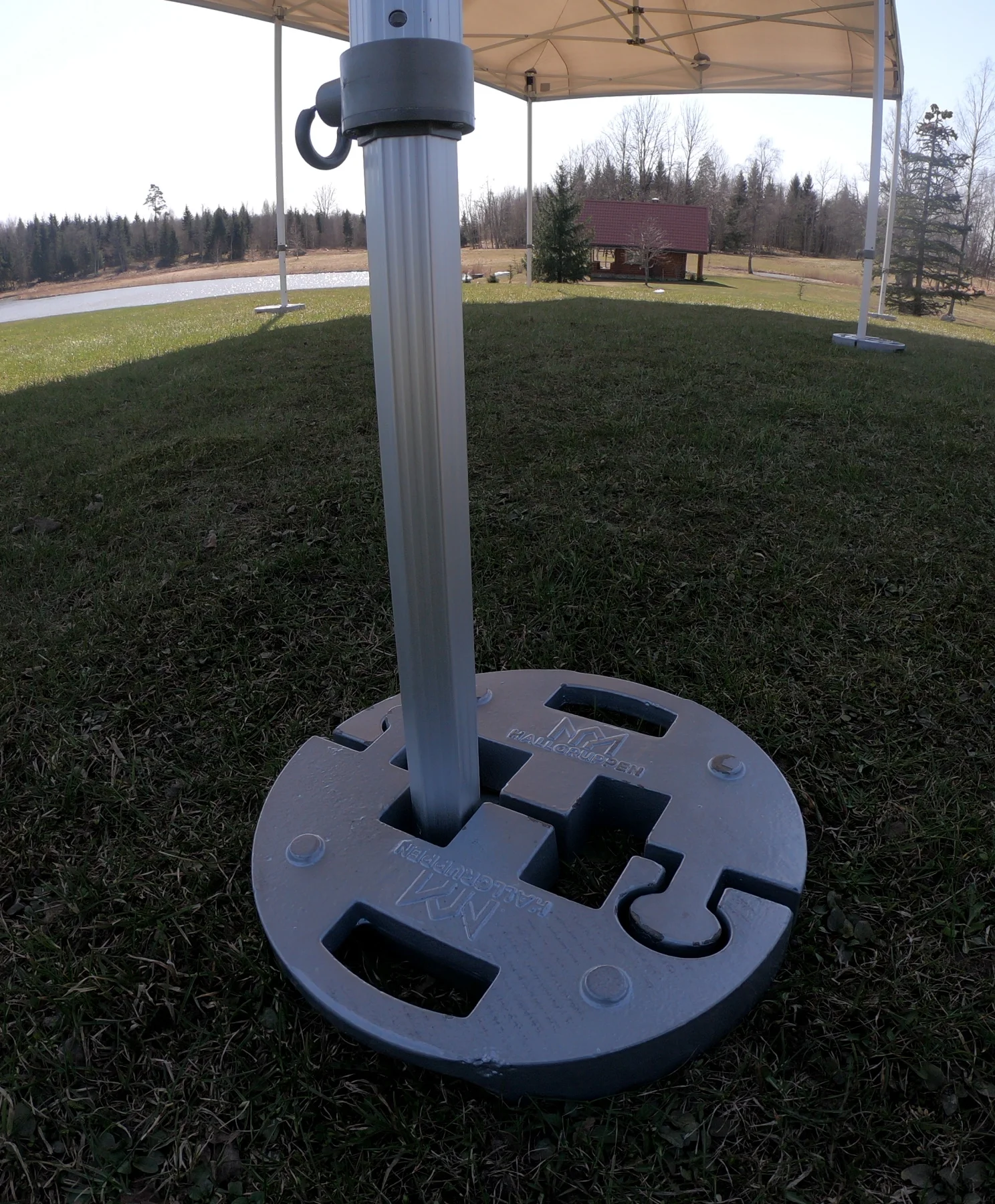 Komplektā iekļauti 120kg atsvari, atsaites un atsaišu mietiņi. Telts pārvietojama transporta somā ar ratiņiem.