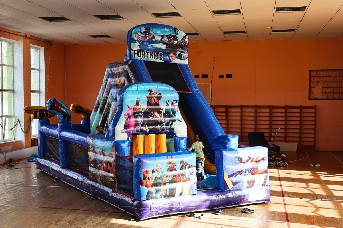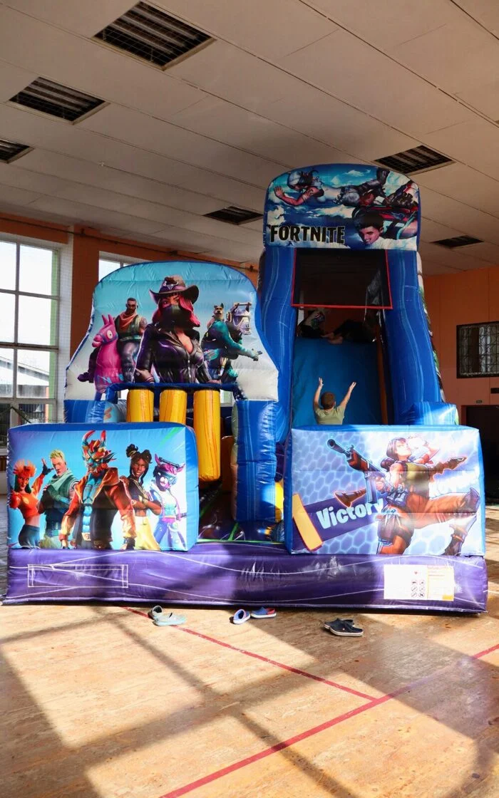 Atrakcijā ir aizraujoša šķēršļu josla, varens pakāpienu režģis, kura uzvarētājus apbalvo ar garāko sortimenta slidkalniņa nobraucienu! Atrakcijas slidkalniņa jumta Fortnite elementu redzēs vēl tālu citi kaimiņi, tā augstums sasniedz 6,5m.