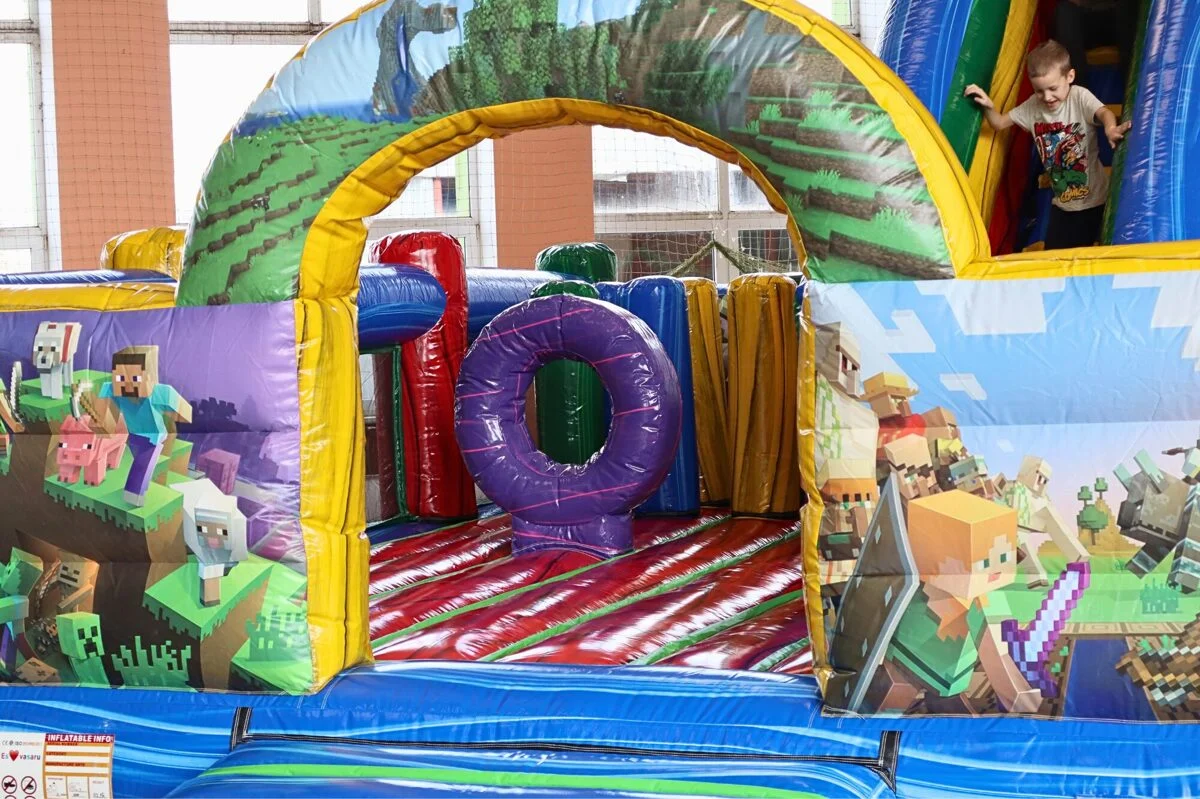 Minecraft modelis ir izcils lego fanātu tematikas sapnis. Ienirsti minecraft sarežģītajos biezokņos, spēlē spēles ar draugiem plašajā atrakcijas lēkajamā zonā un traucies nobraucienā 4,6m garumā.