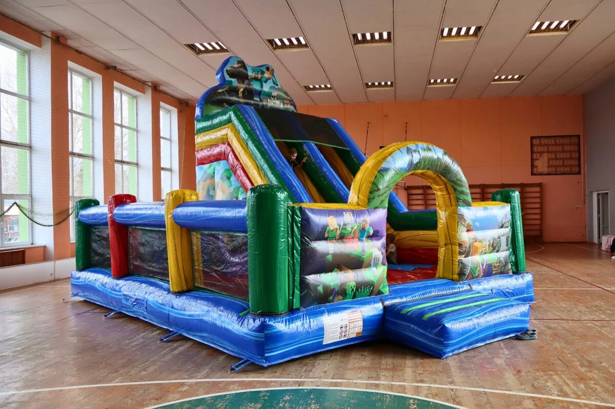 Nomas komplektā iekļauts, komerciālai lietošanai paredzēts, elektroapgādes pagarinātājs metāla spolē ar kabeli 3x1.5mm² 40m, atrakcijai piemērots gaisa pūtējs un atrakcijas apakšklājs/pārklājs.