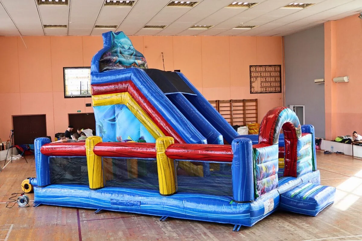 Nomas komplektā iekļauts, komerciālai lietošanai paredzēts, elektroapgādes pagarinātājs metāla spolē ar kabeli 3x1.5mm² 40m, atrakcijai piemērots gaisa pūtējs un atrakcijas apakšklājs/pārklājs.