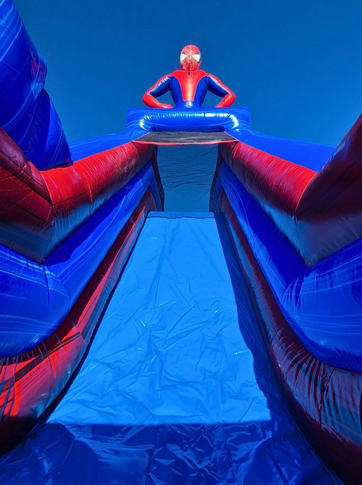 Atrakcijas slidkalniņa nobrauciens 590 centimetru garumā un 140 centimetru sagādās piedzīvojumu sajūtu, gluži kā kā pilsētā ,kurā spaidermenam pārvietojoties pa maju jumtiem izšauj savus tīklus!